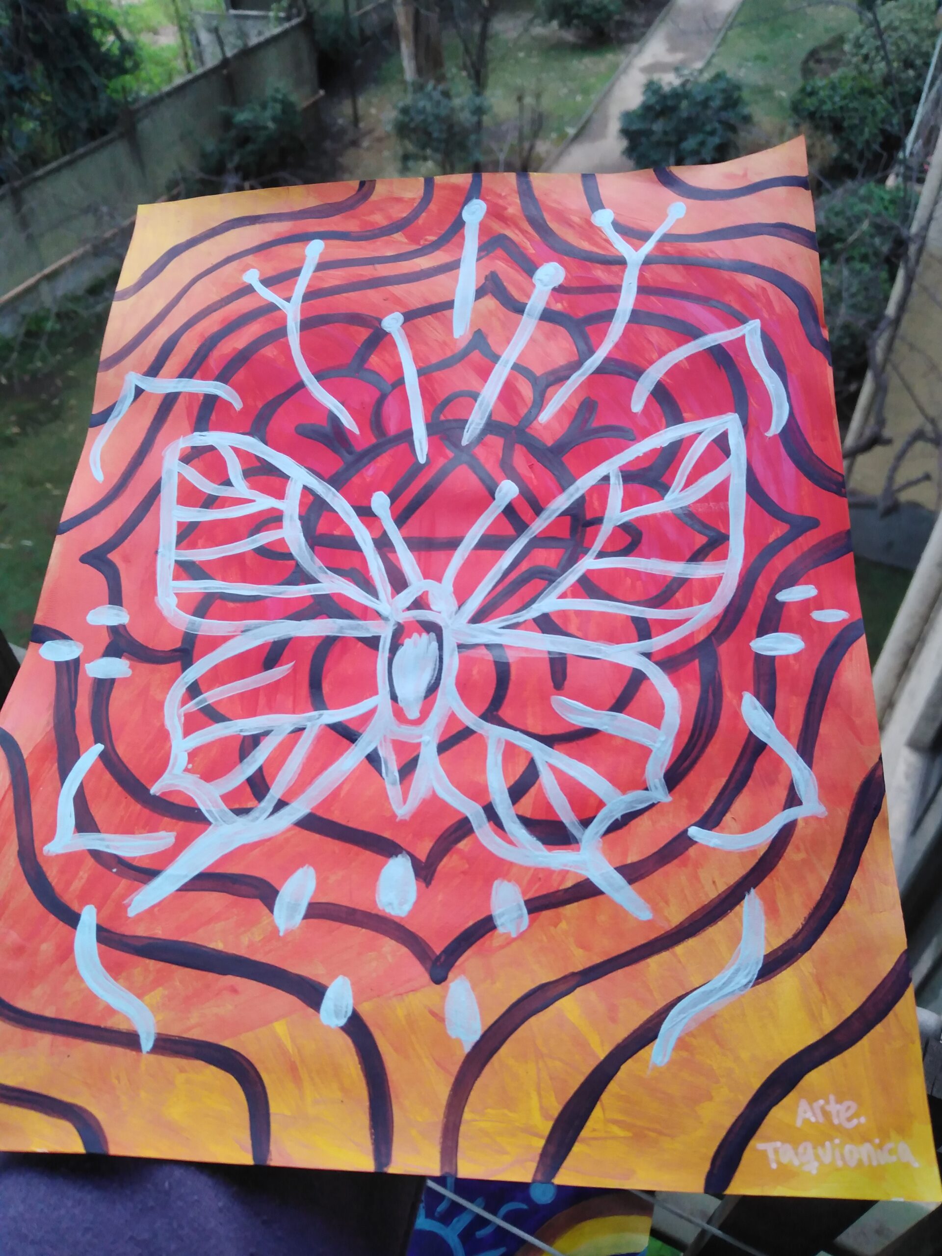 🦋🖌️🎨 Una pintura con acrílico sobre papel de una mariposa con líneas y colores vibrantes, experimentando. Arte disponible en formato digital para imprimir en buena resolución.