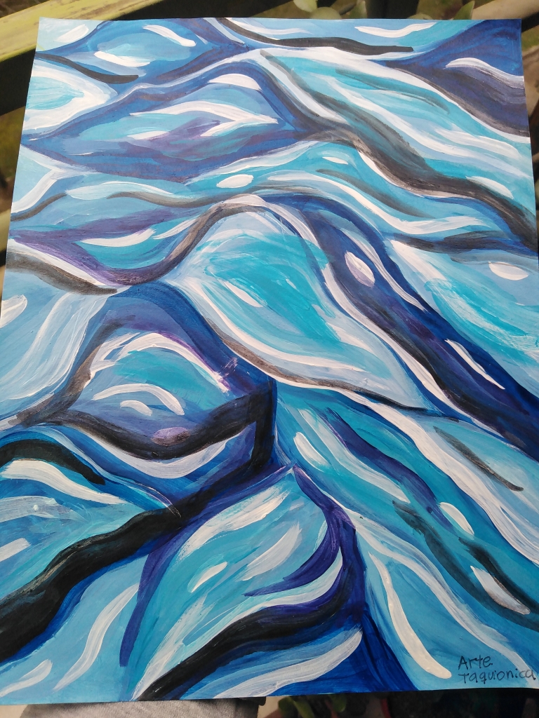 Pintando colores azulados me salió esta pintura de texturas de agua. Disponible muy pronto en versión digital para imprimir.