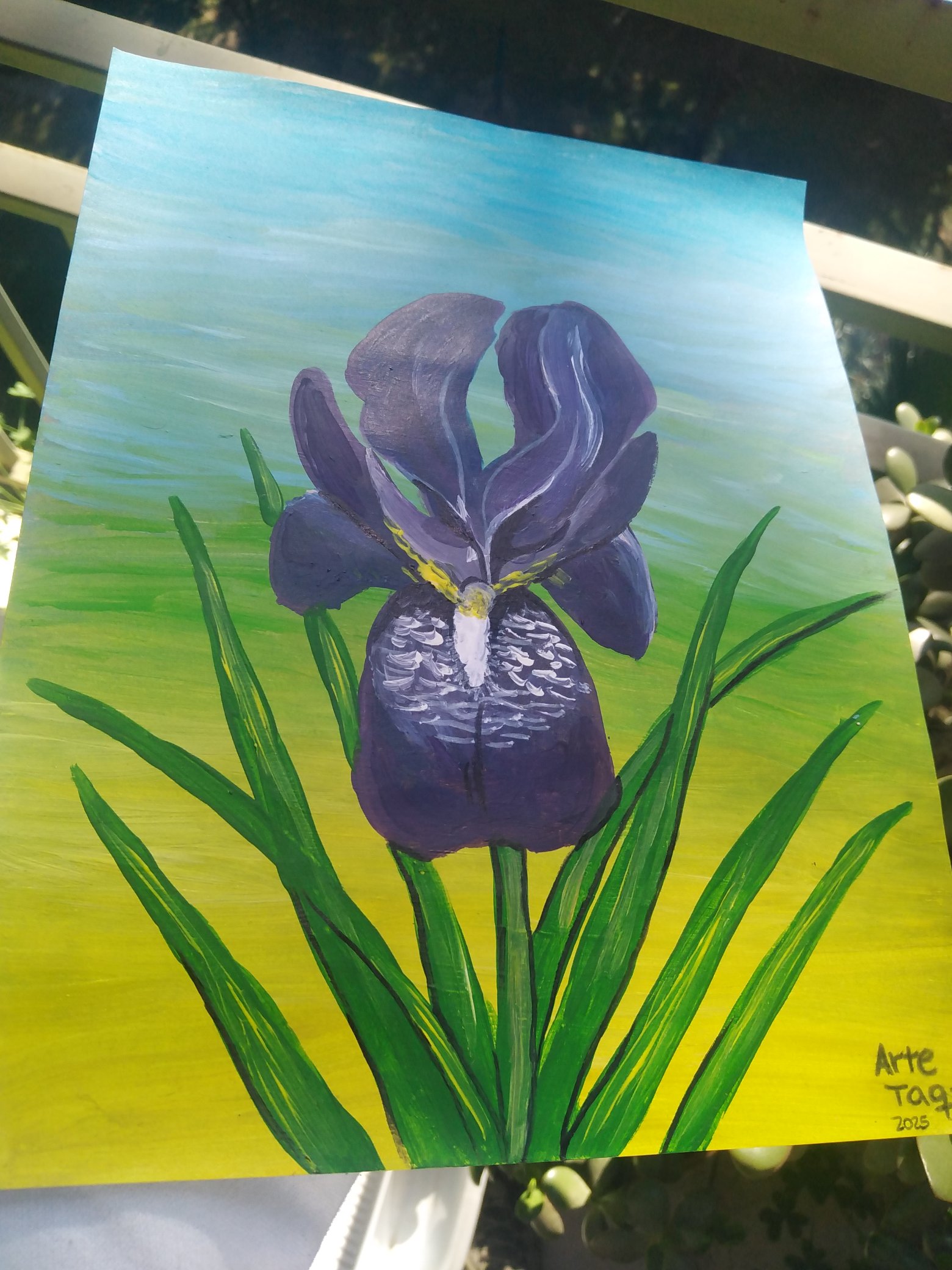 Flor iris Germánica pintada en papel. Con mi estilo. Acrílico sobre papel.