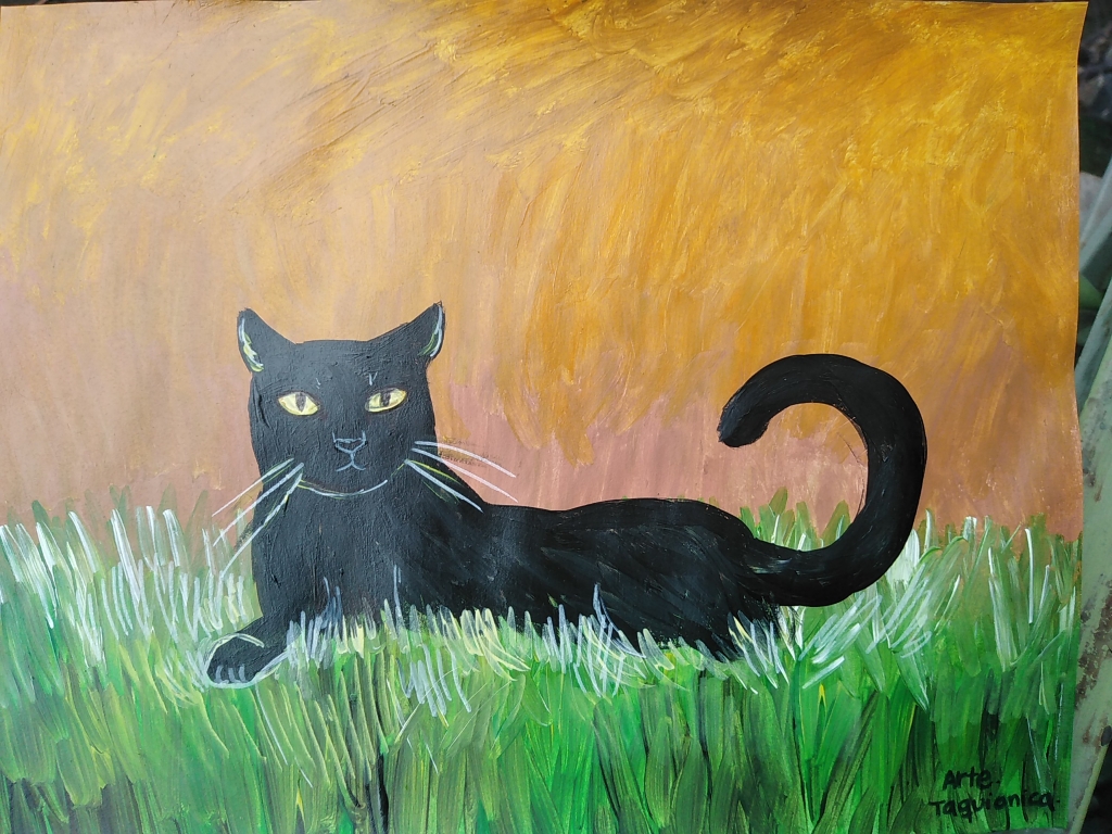 Gato negro pintado en acrílico sobre papel. Puede ver mas de mis trabajos en redes. Pinto en mis tiempos libres aprovecho cada momento. El tiempo siempre se hace corto cuando uno hace lo que le gusta.