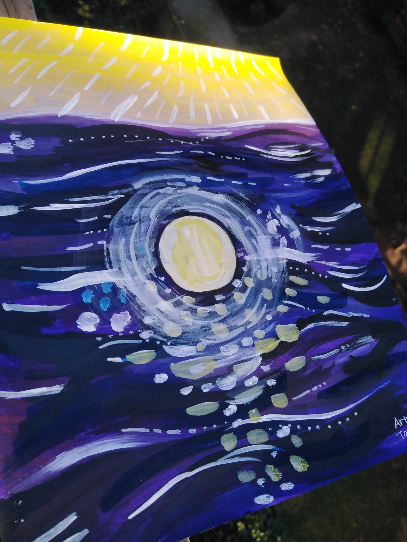 Pintura orbe sobre el agua. ⚪🎨🖌️ Experimentando con acrílicos y papel. Si te gusta mi arte sígueme.